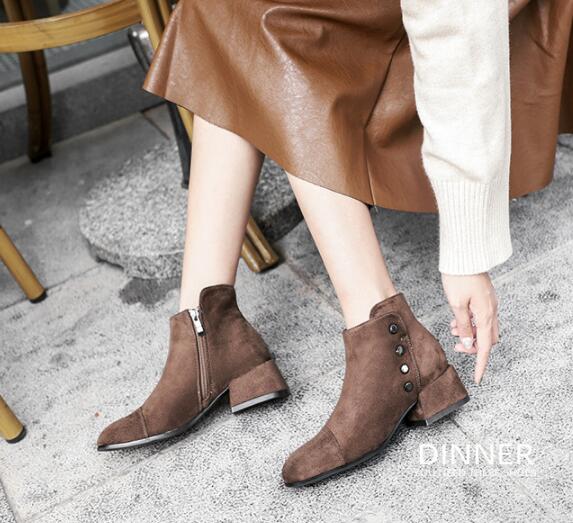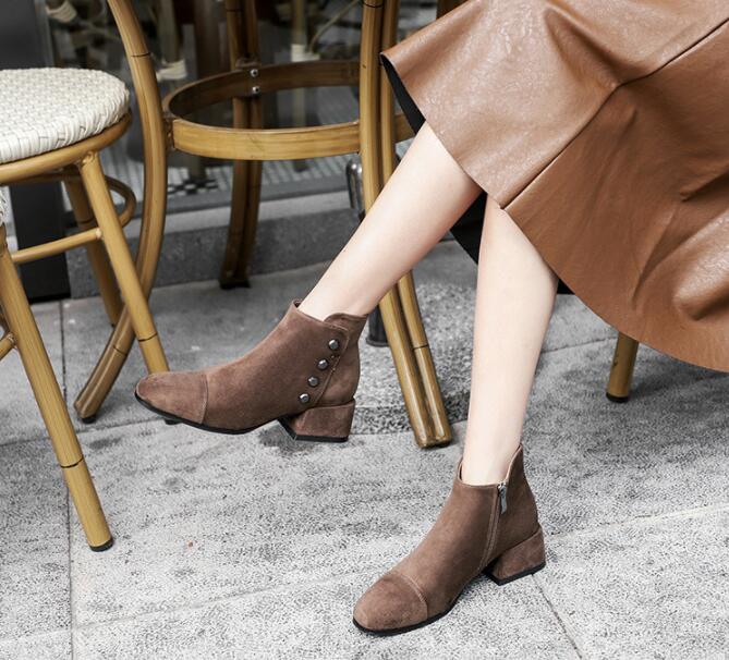 New autumn and winter round toe all-match black side zipper thick heel boots