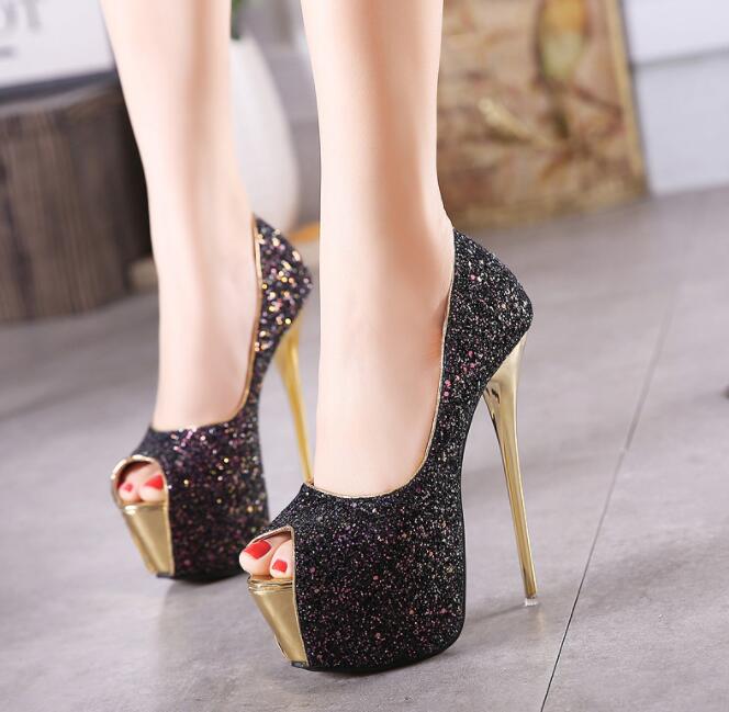 Explosive style fish mouth super high heel sexy sequin sandals women