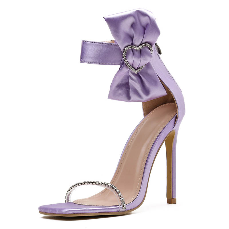 New Rhinestone Bowknot Large Size High Heel One Word Sandals Women