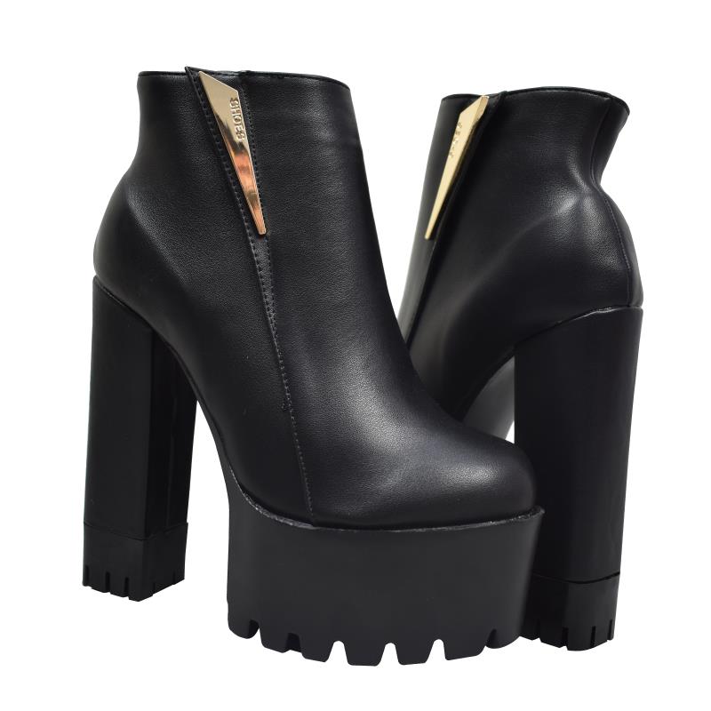 Sexy Black and Gold High Heel Booties