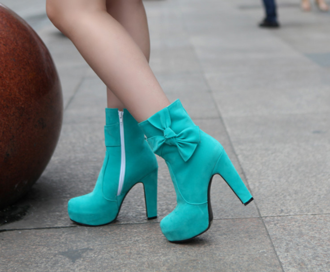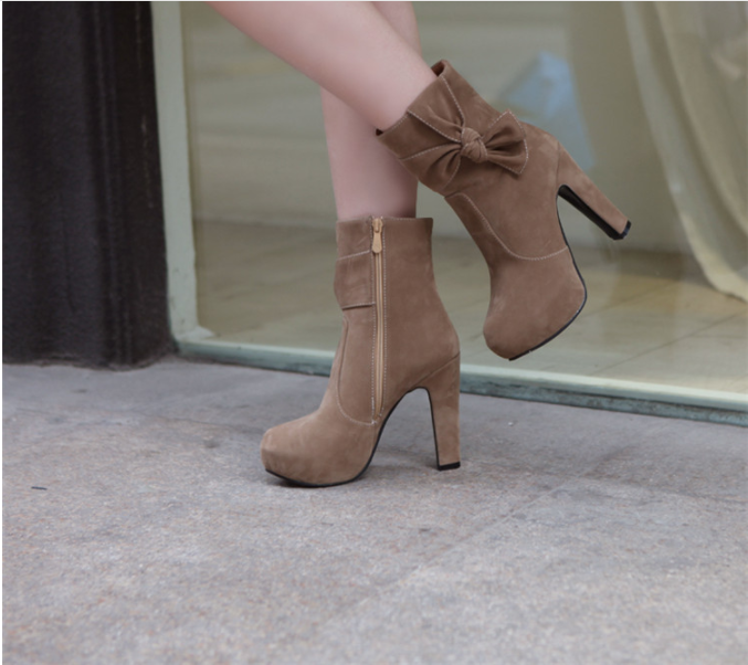 New solid color zipper super high heel thick heel round toe short boots suede