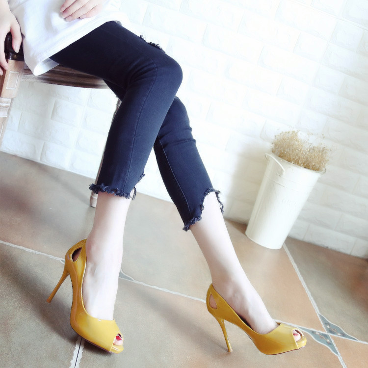 New Fine With Shallow Mouth High Heels Sexy Patent Leather Hollow Single Shoes Female Fish Mouth Shoes