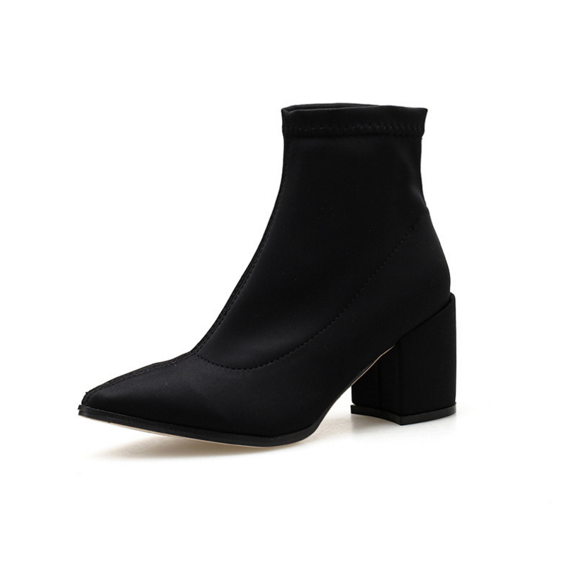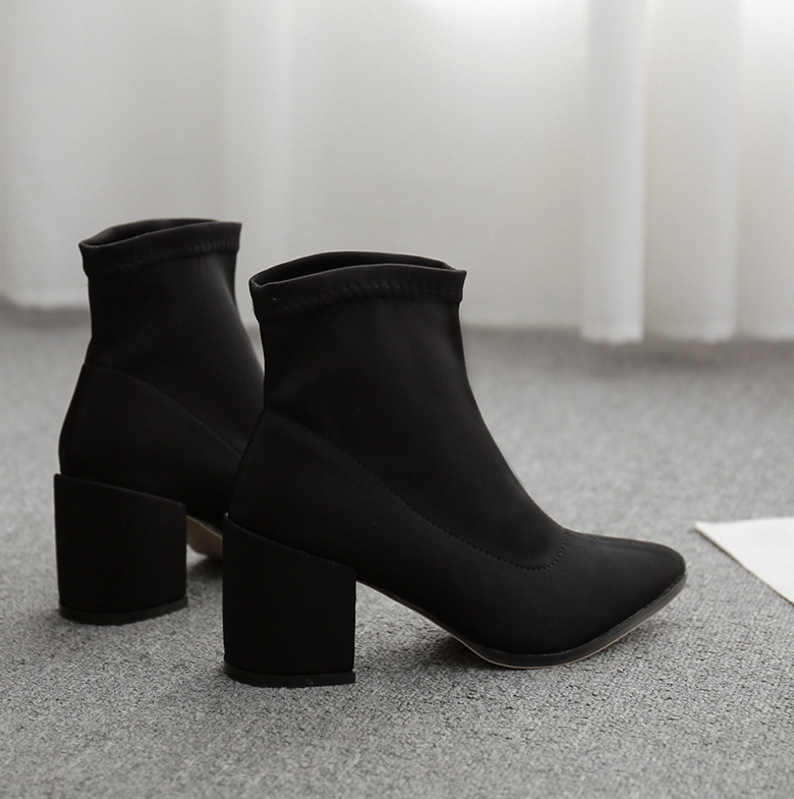 New Boots Thick Heel Stretch Cloth Short Tube Women's Boots Woman Shoes