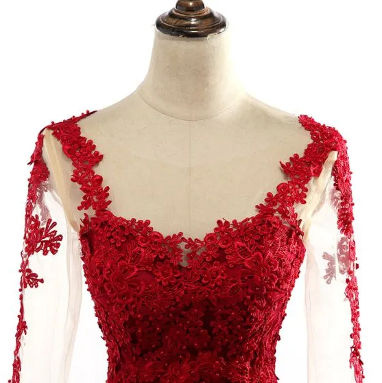 Scoop Neck Appliques 3/4 Sleeve Trumpet / Mermaid Lace Formal Dresses