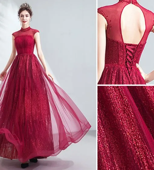 Vintage / Retro Burgundy Evening Dresses