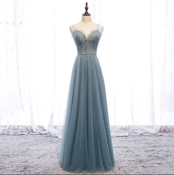 A-Line / Princess Ruffle Spaghetti Straps Beading Pearl Sequins Sleeveless Backless Floor-Length / Long Formal Dresses