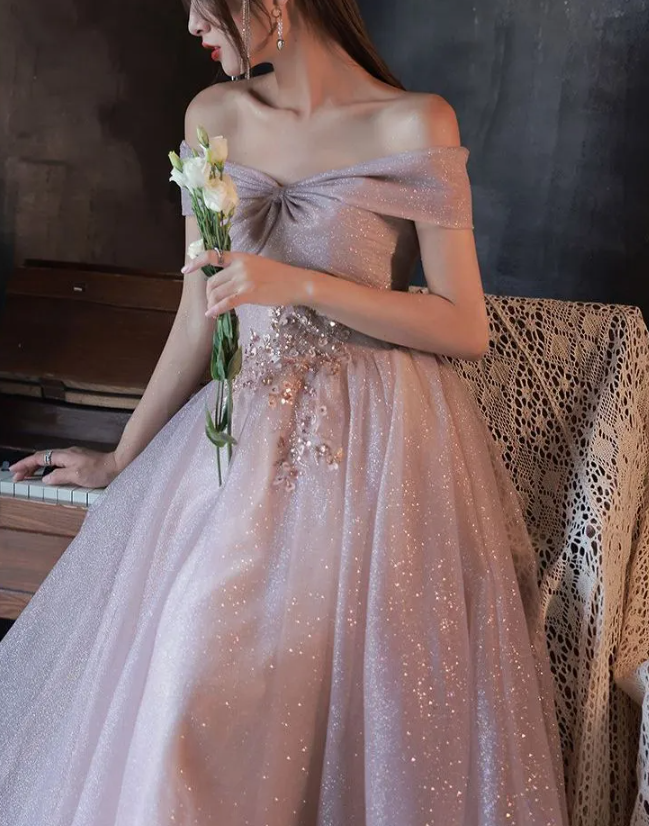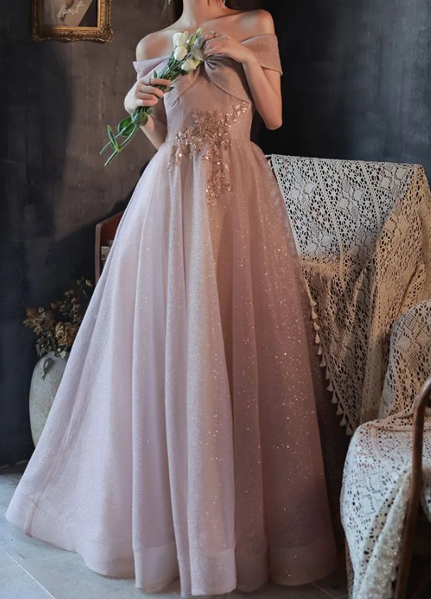 Glitter Mesh A-Line Evening Gown