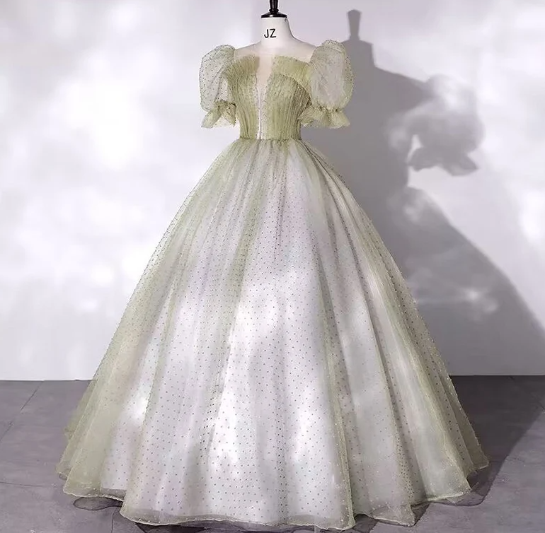 Tulle Short Sleeve White elegant ball gown,Quinceanera and Sweet 16 Dress,evening party prom,princess formal dress