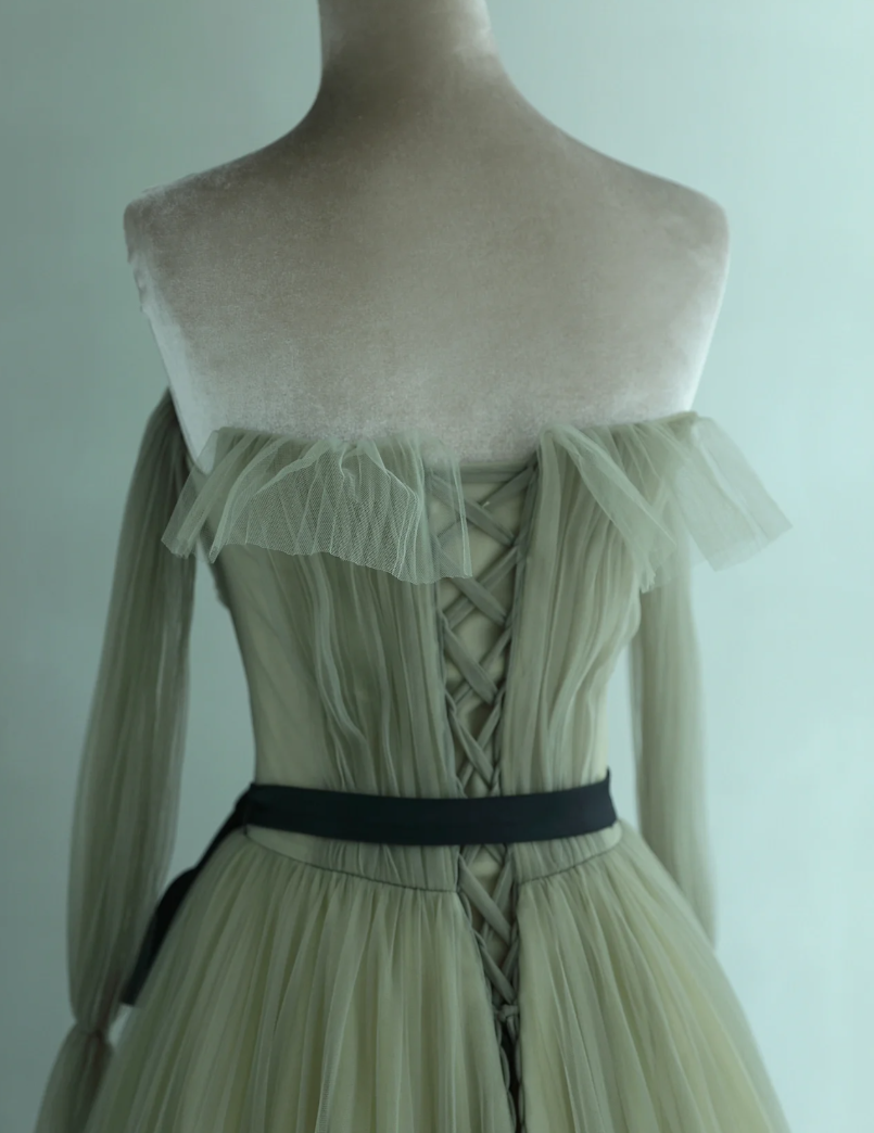Sexy Handmade Floral Off Shoulder Formal Evening Gown A Line Tulle Black Removable Belt, Long Ball Gown