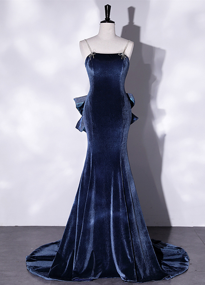 Prom Dresses,spaghetti Strap Prom Dresses, Blue Evening Dresses Velvet Party Dresses