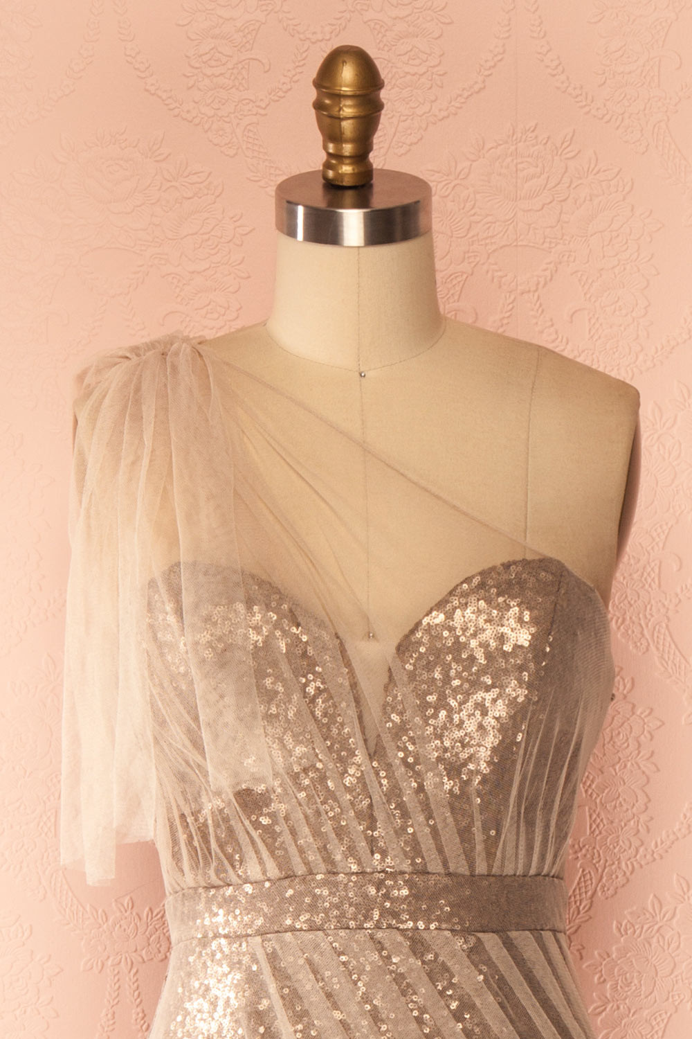 champagne Long Evening One Shoulder Sequins Tulle Women's,formal Party Dresses