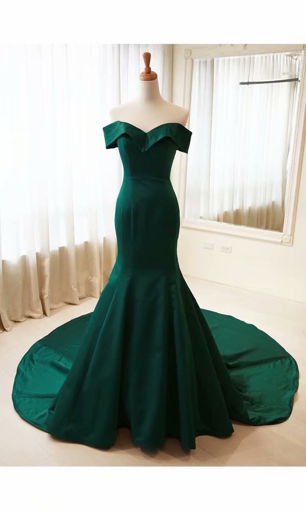 Off The Shoulder Green Mermaid Prom Dresses Evening Dress