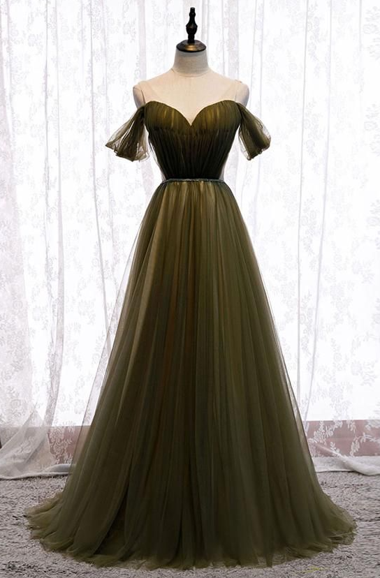 Off Shoulder Long Tulle Prom Dresses, Wedding Party Dresses