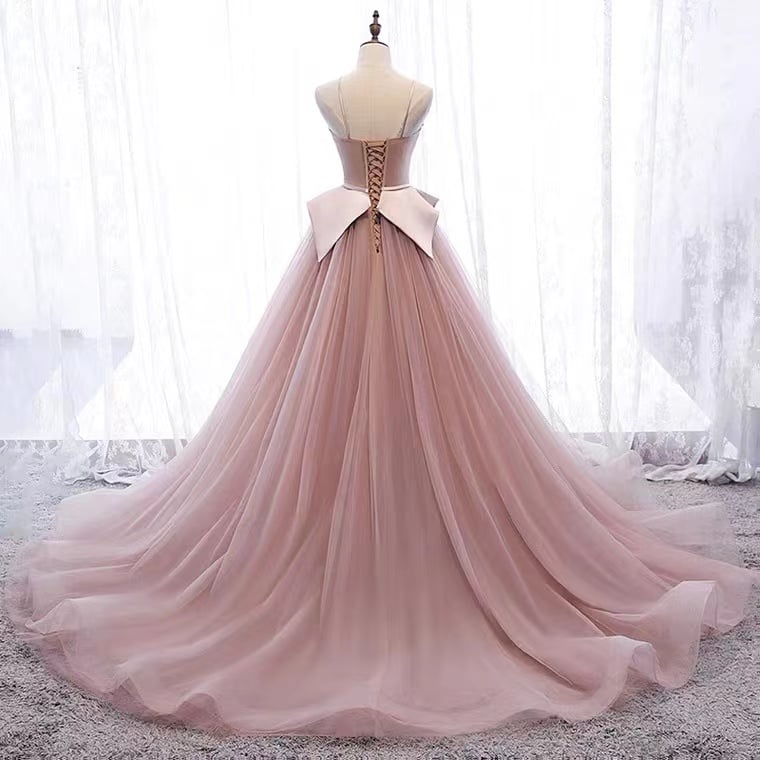 Pink Evening Dress, High Quality Socialite Birthday Party Dress, Trailing Evening Dress,