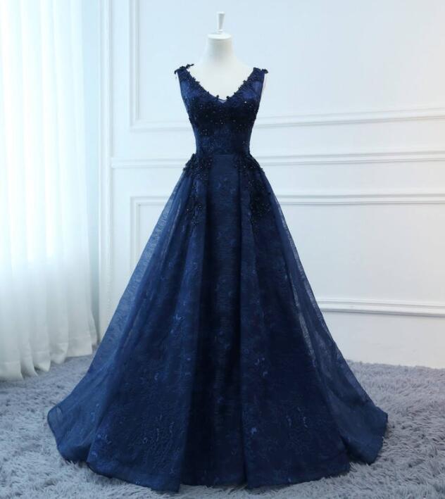 Fashionable Long Navy Blue Evening Dresses Foral Tulle Dress Women Formal Party Gown