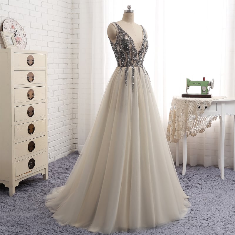 Sexy Deep V Neck Formal Prom Dress, Beautiful Long Prom Dress, Banquet Party Dress