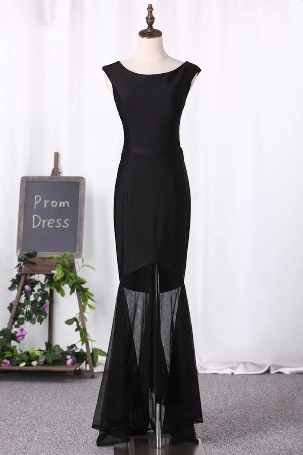 Black Crew Neck Sleeveless Sheath Prom Dresses