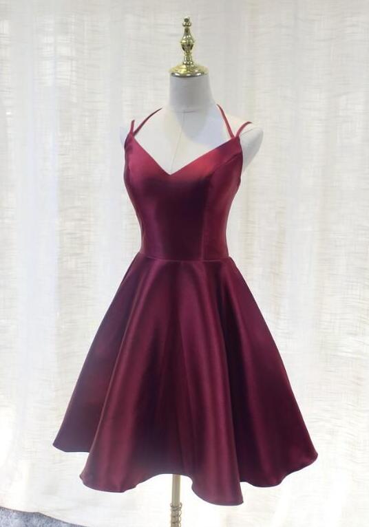 Straps V-neckline Burgundy Short Party Dress
