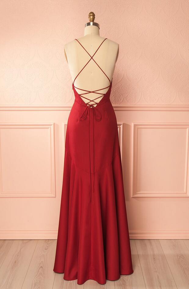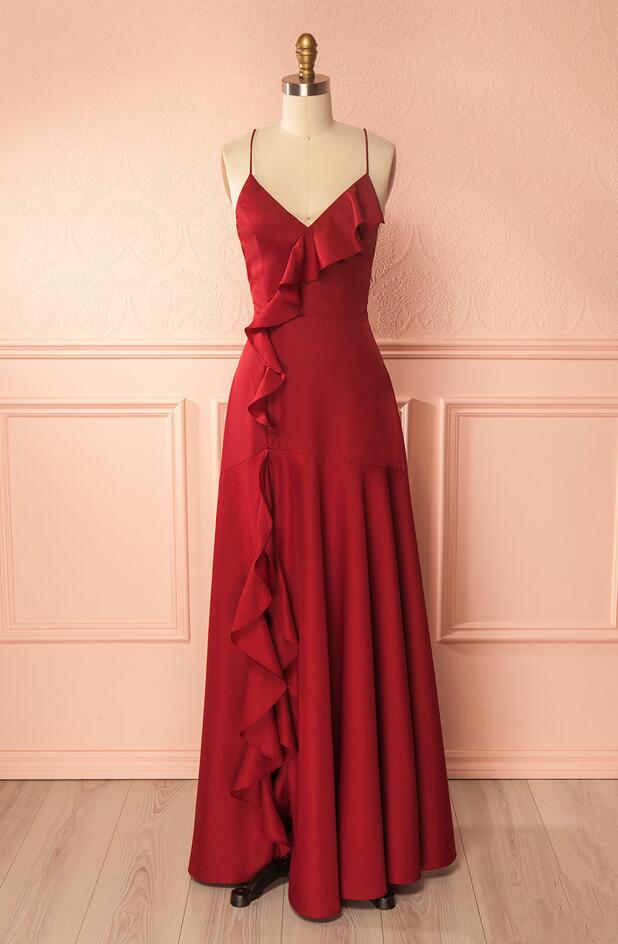 Simple A Line Burgundy V Neck Long Chifofn Prom Dress