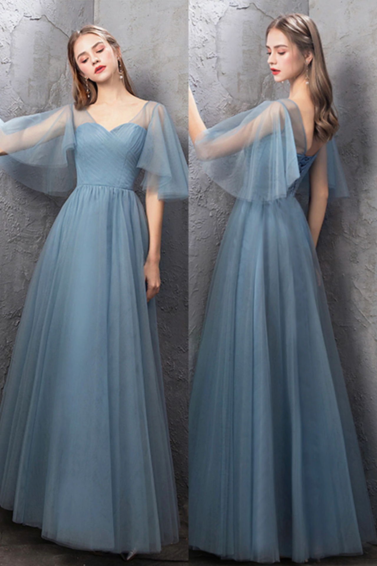 Lovely Light Blue Tulle Long A-line Party Dress Formal Dress