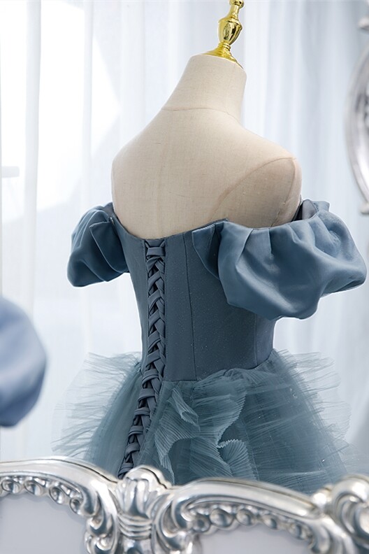 Strapless Blue A-line Long Prom Gown