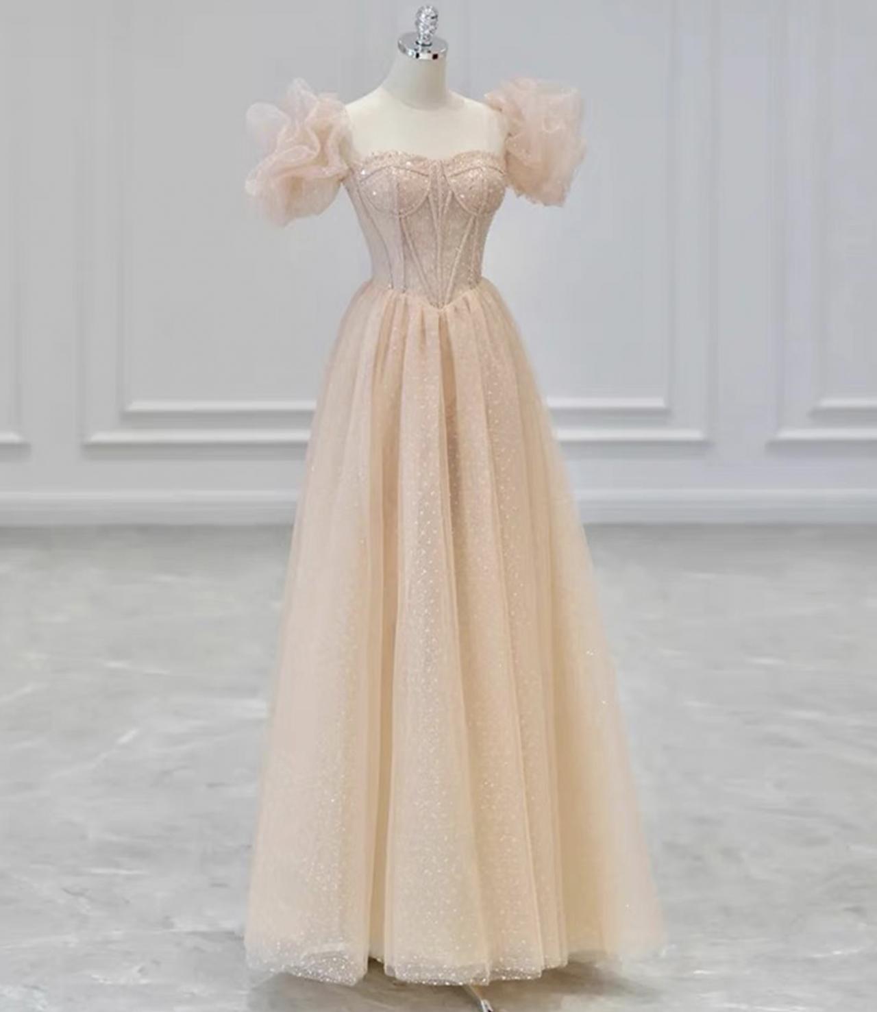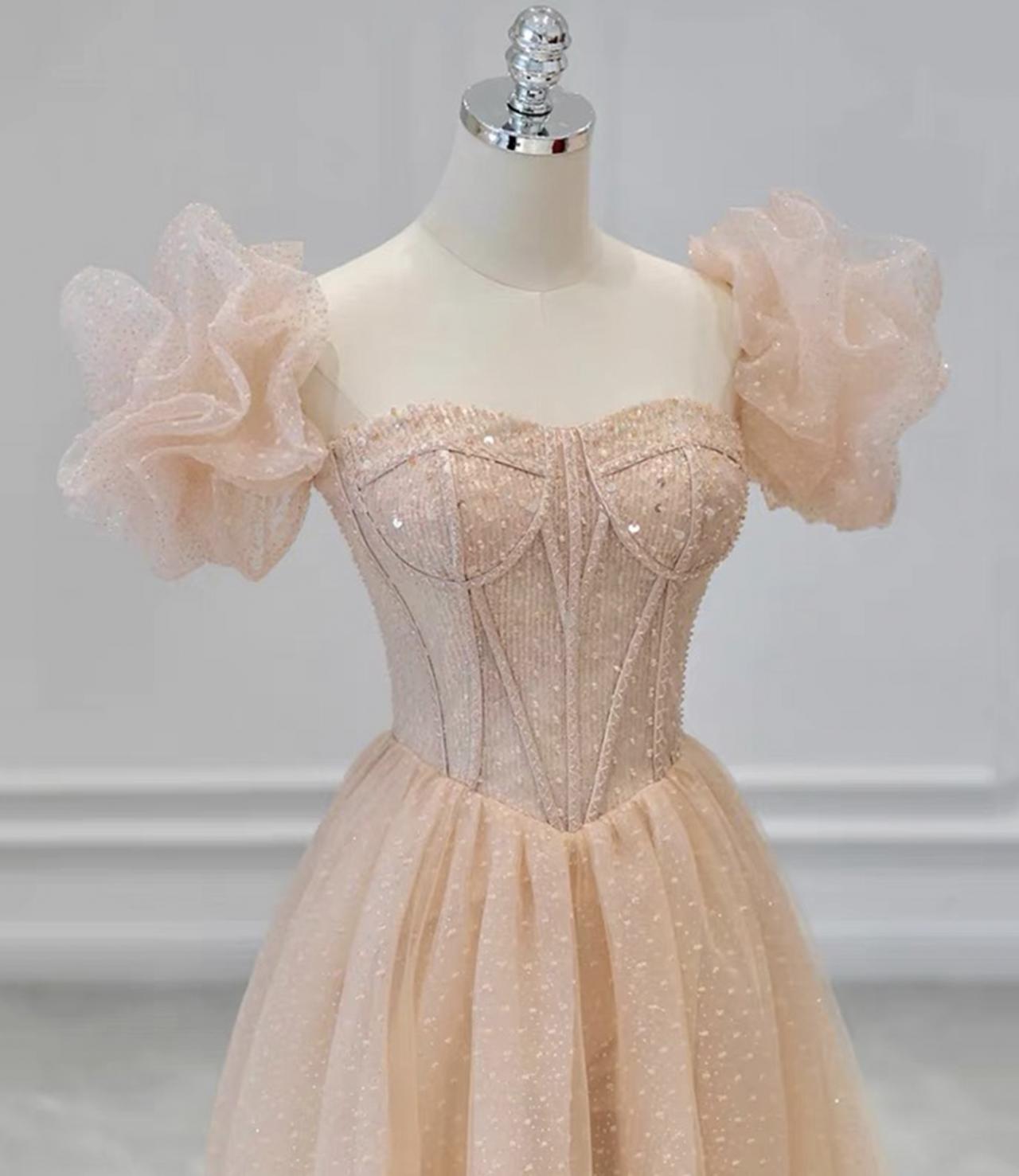 Pink Tulle Sequins Long Prom Dress Evening Dress