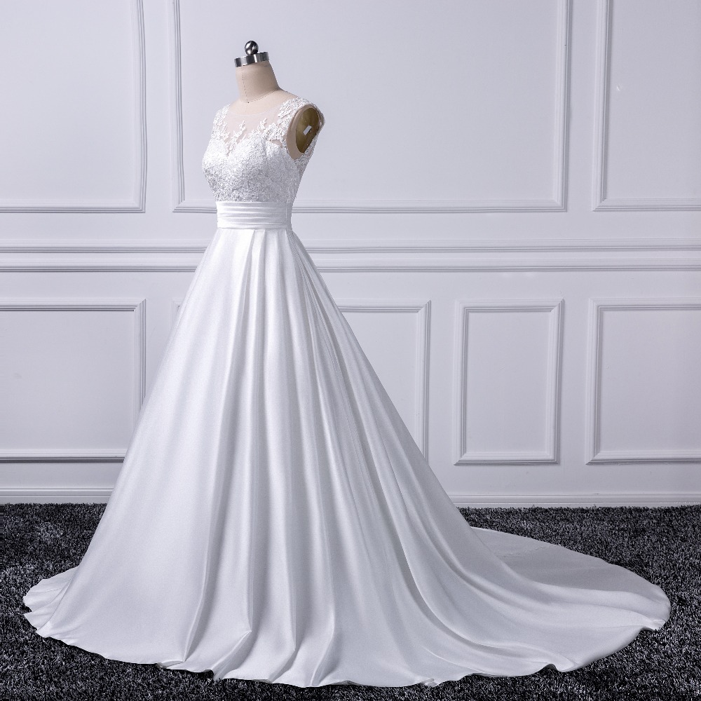 Low Back Wedding Dresses,chapel Train Bridal Gowns, Satin Bridal Dresses