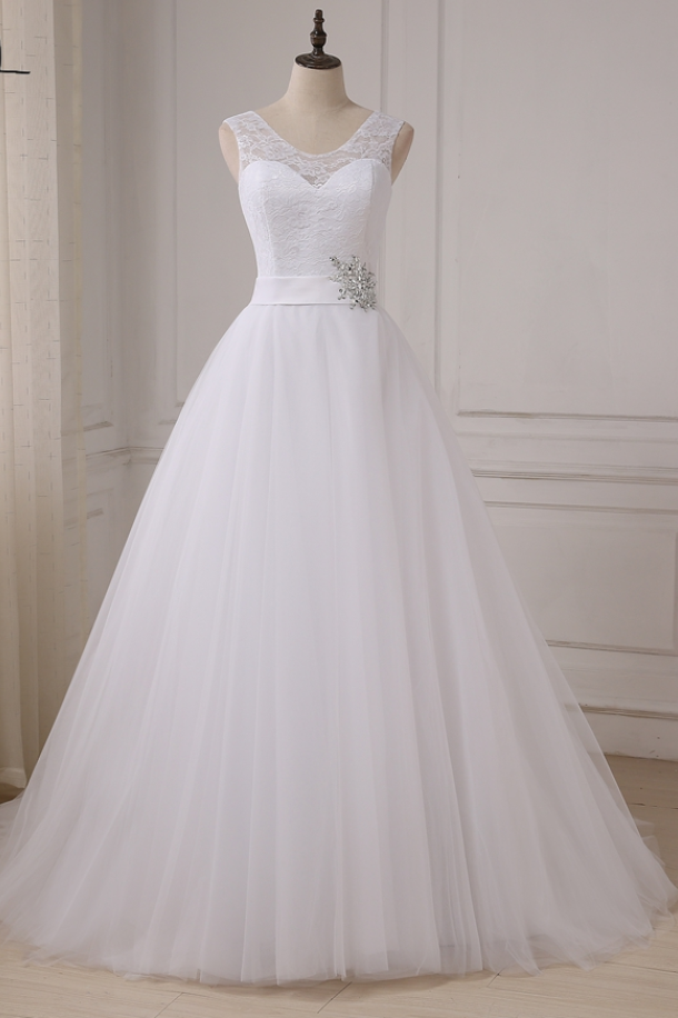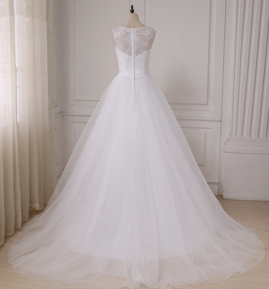 tulle A-line Lace Wedding Dresses Cap Sleeve Wedding Gowns