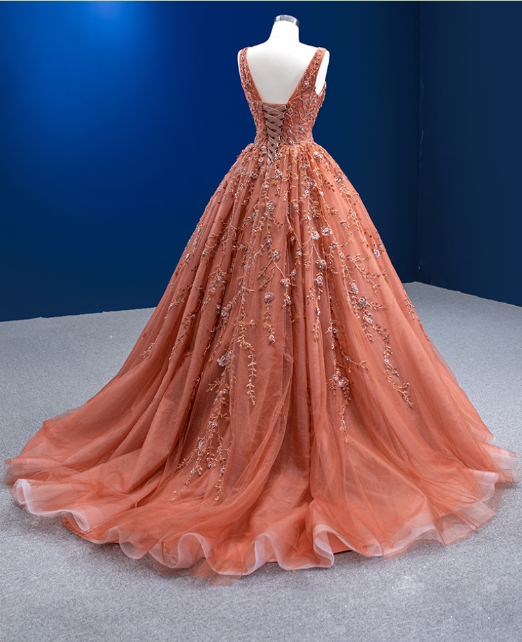orange Red Evening Gowns Temperament Celebrity Long Stage Gowns Party Dresses