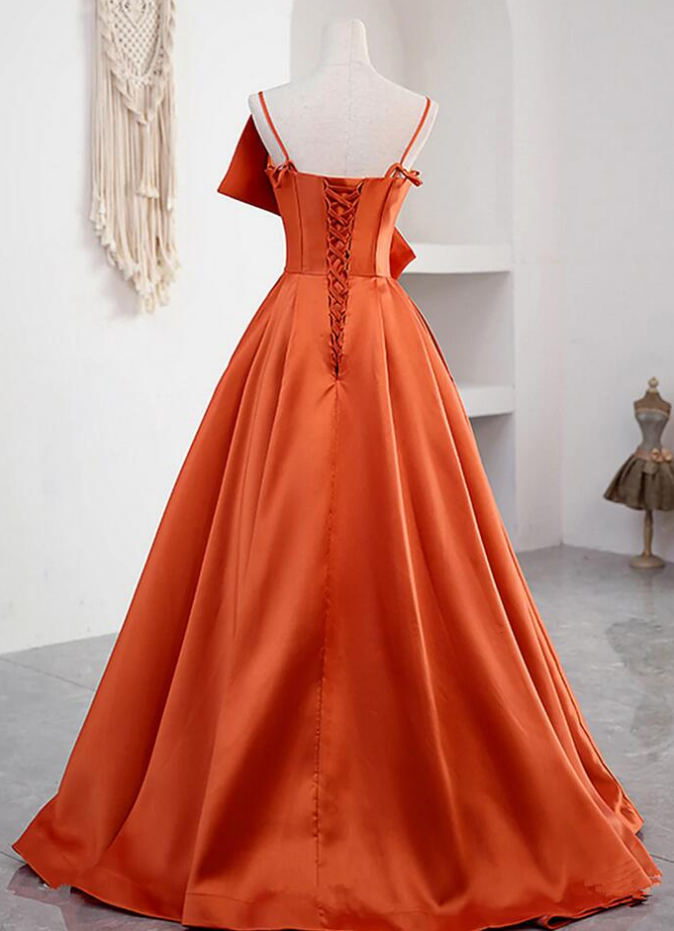 orange Satin Strapless Floor Length Gowns Birthday Party Evening Dresses